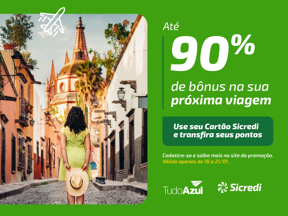 O Sicredi fechou uma parceria com o programa de recompensas com o Tudo Azul, programa de pontos da cia aérea Azul. Com isso, os associados poderão transferir pontos gerados no Sicredi para o TudoAzul, com até 90% de bônus. A campanha é válida entre os dias 18 e 21 de janeiro.