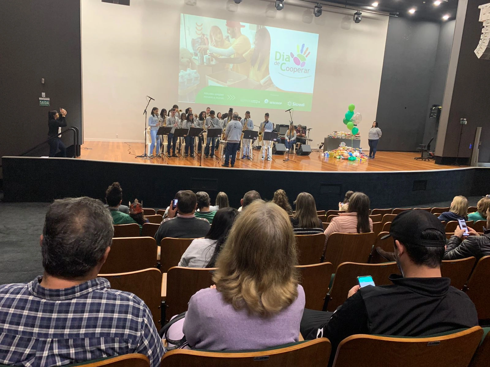 No dia 13 de agosto, A Sicredi Interestados reuniu colaboradores, associados e parceiros para celebrar o sucesso das ações do Dia C. No auditório da Cooperativa, os presentes foram recepcionados pela Banda do Instituto de Menores Dom Antonio Zattera, que realizou uma belíssima apresentação. Ainda, na oportunidade foi realizada a entrega simbólica dos alimentos ao grupo Parceiros Voluntários, representados pela Associação Comercial de Pelotas.