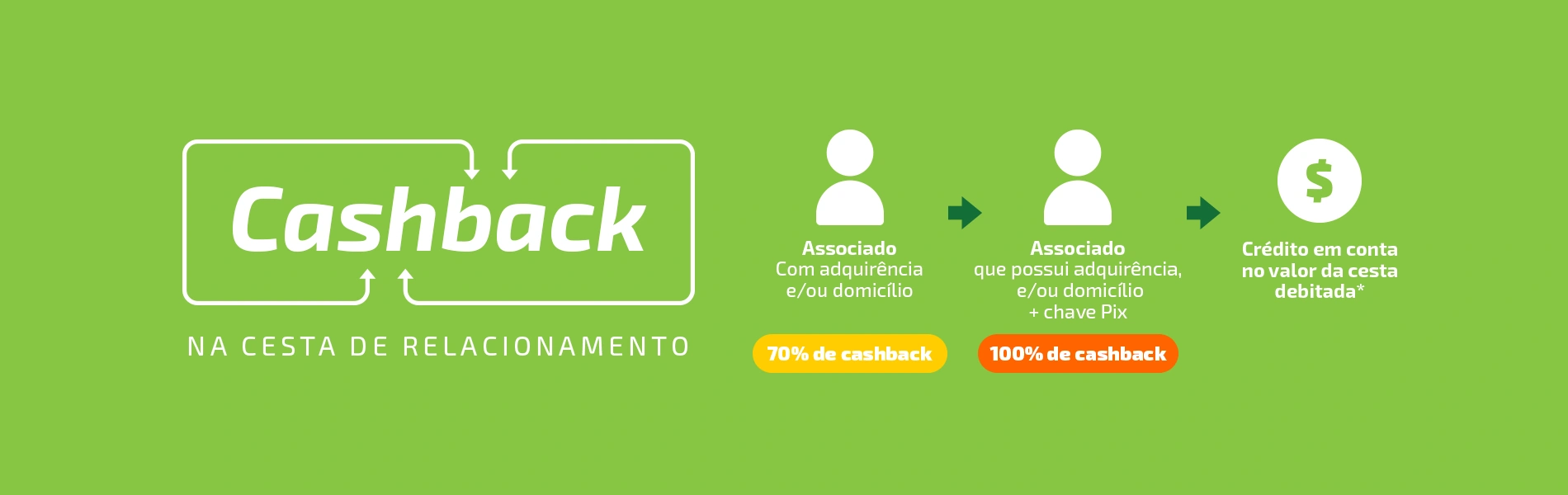 • Associado com adquirência e/ou domicílio: 70% de cashback