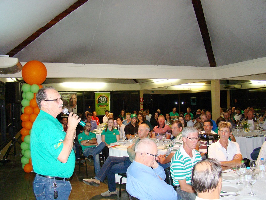 Encerrando a Assembleia os presentes cantaram os parabéns pelos 30 anos de atuação da Sicredi Zona Sul RS em 11 municípios da Região Sul do Estado, que cresceu de 27 associados para mais de 60 mil associados em 2015.