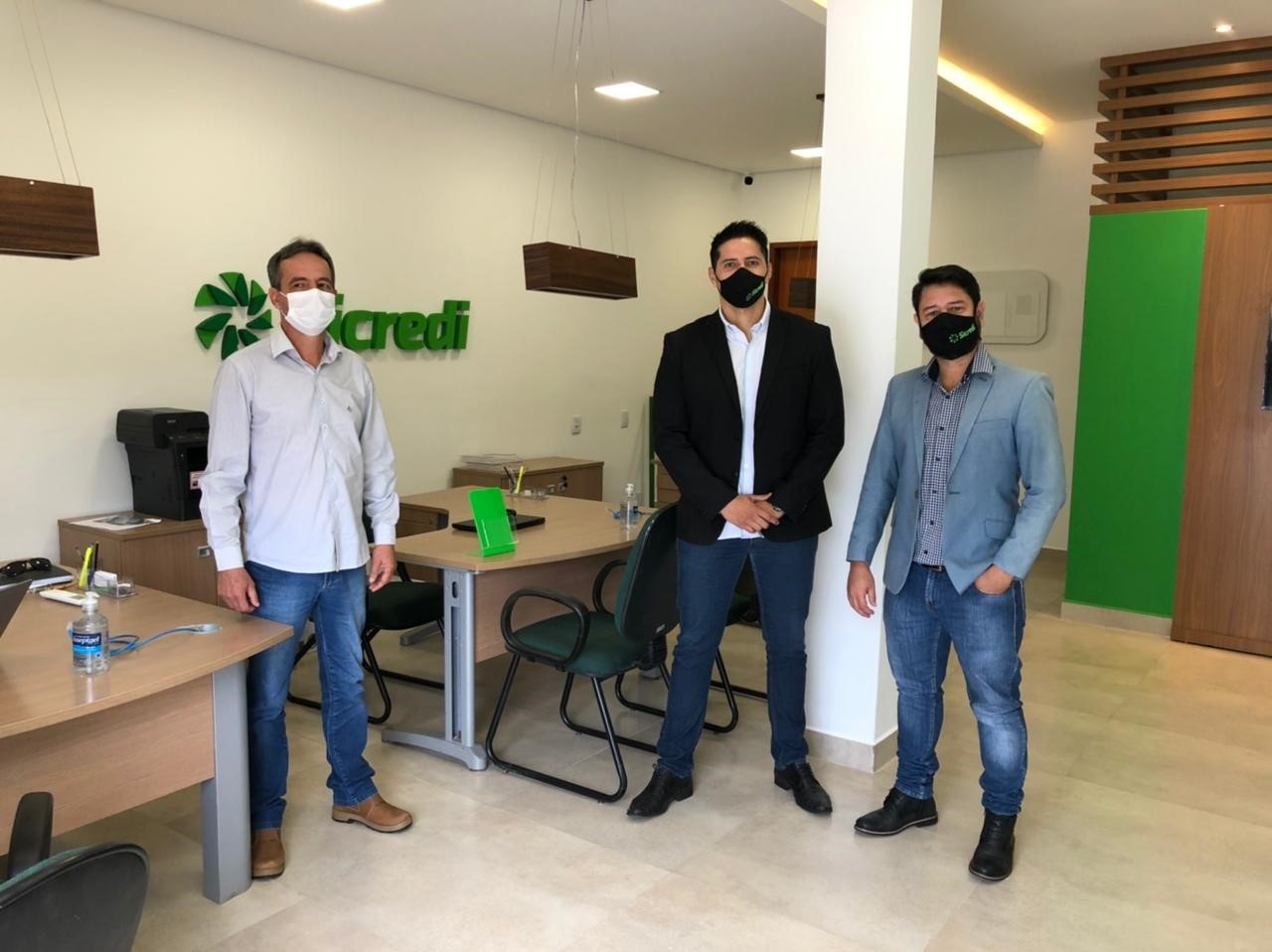 Respeitando o protocolo estabelecido para o período, o presidente da Sicredi Pantanal MS, Emerson Perosa, acompanhado do diretor executivo, Adauto Valente, fizeram uma visita ao escritório pela mannhã, onde encontraram com o gerente da Agência de Aquidauana, Gliverson Xavier e o colaborador responsável pelo novo espaço, Wilker Yamashita. Ali, a equipe recebeu o pastor Lázaro Magalhães, que proferiu uma benção para marcar o início desse novo posto de atendimento da cooperativa.