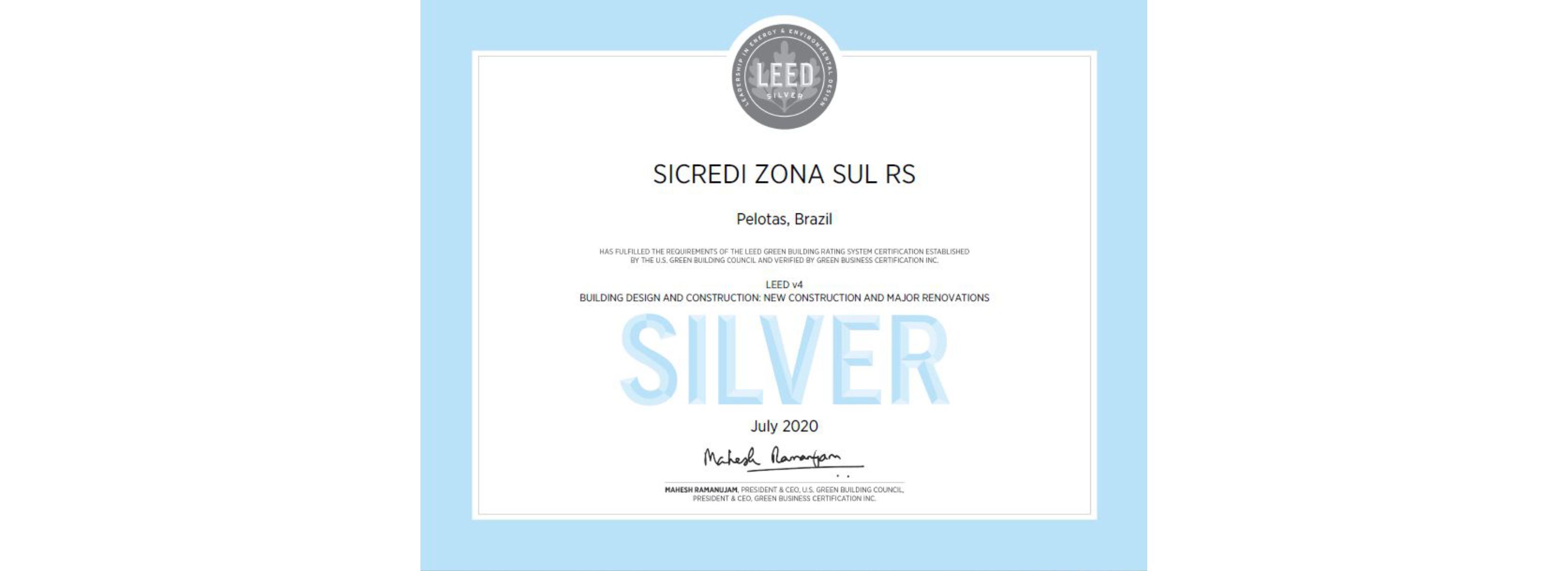 O projeto da Sede da Sicredi Interestados RS, tornou-se a primeira edificação certificada LEED na região em que está inserida, conformando não só o entorno edificado daquele local, mas um exemplo a ser seguido pela indústria da construção que deve ter por objetivo não apenas as questões mercadológicas, mas principalmente a busca na construção de um mundo melhor e mais sustentável, o que garantira um futuro mais humano para as novas gerações, explica o arquiteto Rodrigo Gamboa.