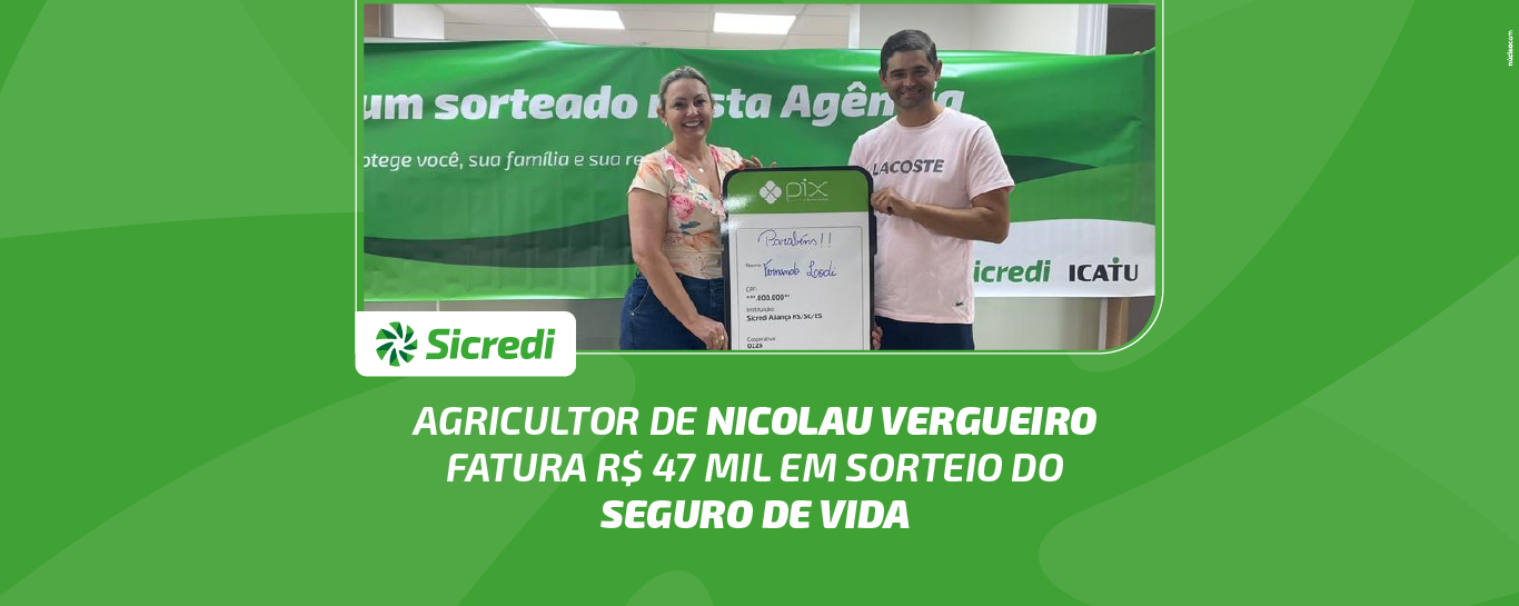 Há 38 anos como associado à Sicredi Aliança RS/SC/ES, o agricultor Dirceu Müller, 67 anos, de Nicolau Vergueiro, recebeu nesta terça-feira, 25 de outubro, de forma simbólica, um prêmio no valor de R$ 25.077,30.