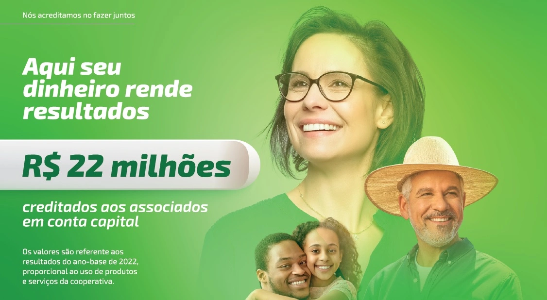 Cumprindo seu propósito de instituição financeira cooperativa, distribui mais de 22 milhões aos associados em conta capital