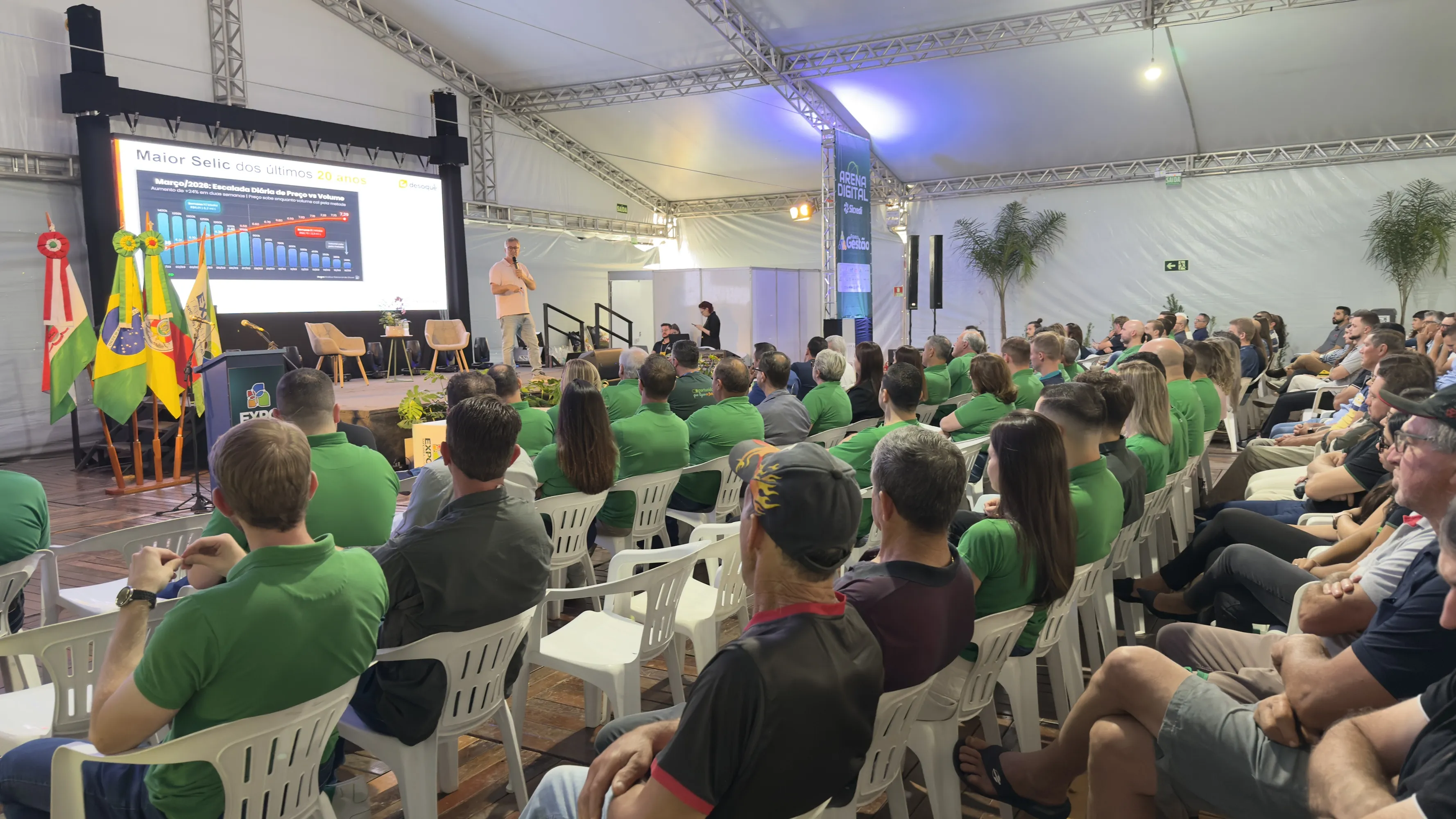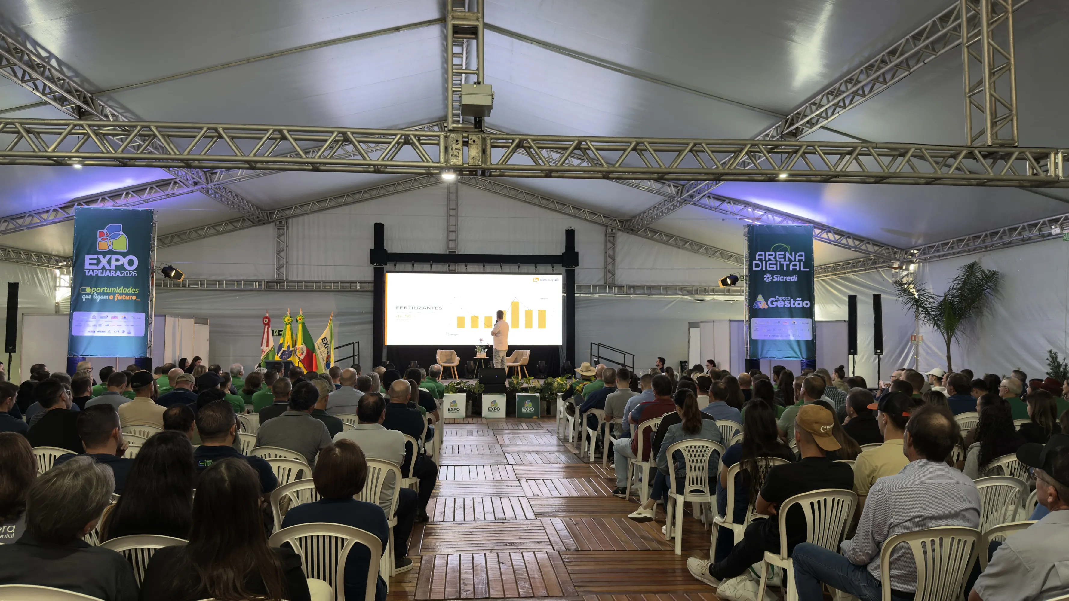 A palestra integrou a programação da Expo Tapejara 2026, que reuniu produtores, lideranças e especialistas para debater inovação, gestão e perspectivas para o futuro do agronegócio.