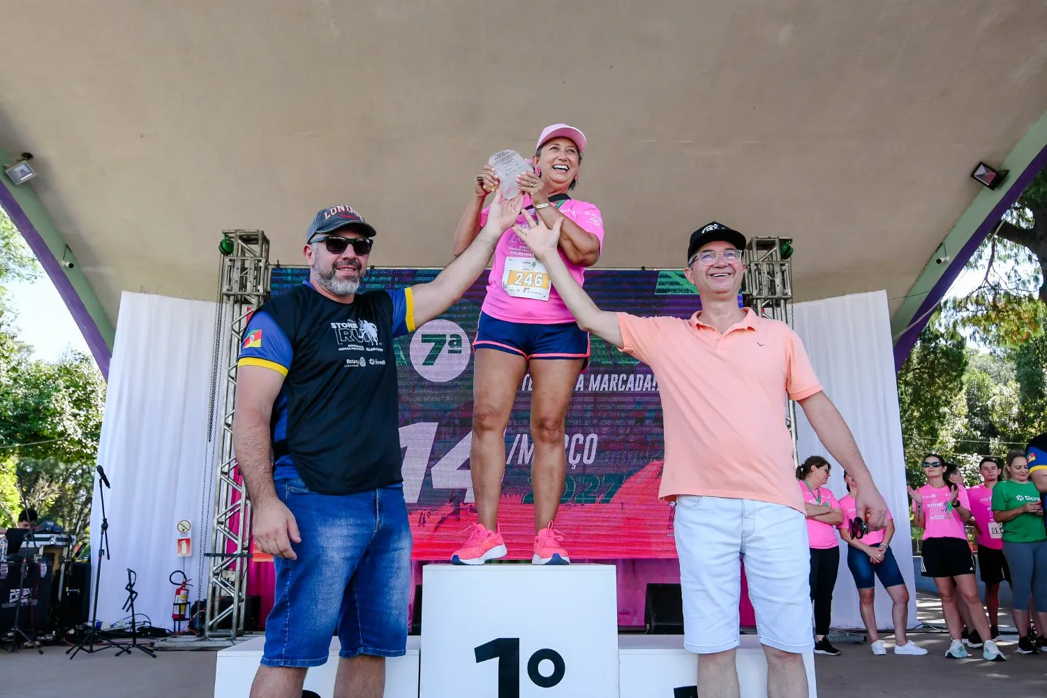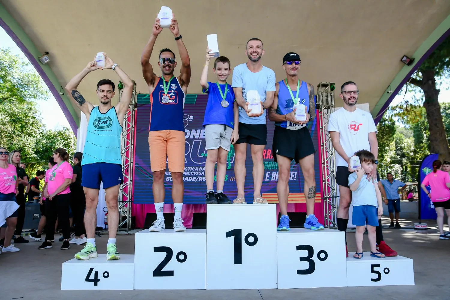 A maior equipe inscrita também foi premiada com troféu, sendo o destaque para o Promuati, de Soledade, que contou com 43 participantes. O programa municipal é voltado ao atendimento da população idosa, com ações ligadas à saúde, convivência social e qualidade de vida, por meio de atividades desenvolvidas pela Secretaria de Assistência Social. A programação da 6ª Stone Run contou ainda com estrutura na Praça Central, incluindo espaço de convivência e alimentação, erva-mate e água quente para chimarrão, além de atrações musicais ao longo do percurso e apresentações no palco. Além do aspecto esportivo, a Stone Run possui caráter beneficente, com recursos destinados a campanhas sociais do Rotary Club de Soledade e ações desenvolvidas em parceria com a Sicredi Botucaraí RS/MG.