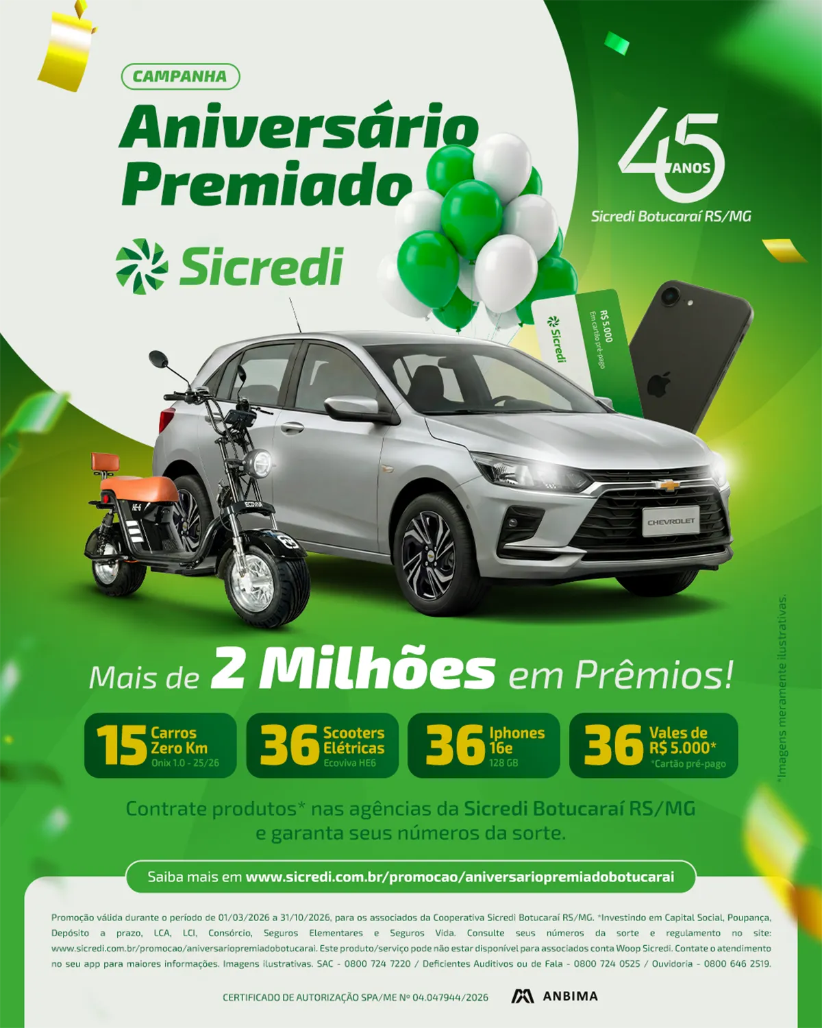 Sicredi Botucaraí RS/MG lança a campanha Aniversário Premiado com mais de R$ 2 milhões em prêmios