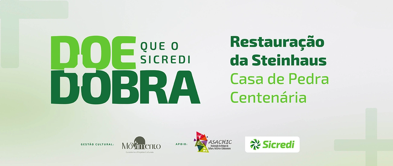 A campanha propõe um modelo de doação colaborativa: a cada real doado pela comunidade para a restauração da Steinhaus, a Sicredi Caminho das Águas dobra o valor, ampliando o impacto das contribuições e acelerando o processo de revitalização do patrimônio. Confira o regulamento no site da Sicredi Caminho das Águas.