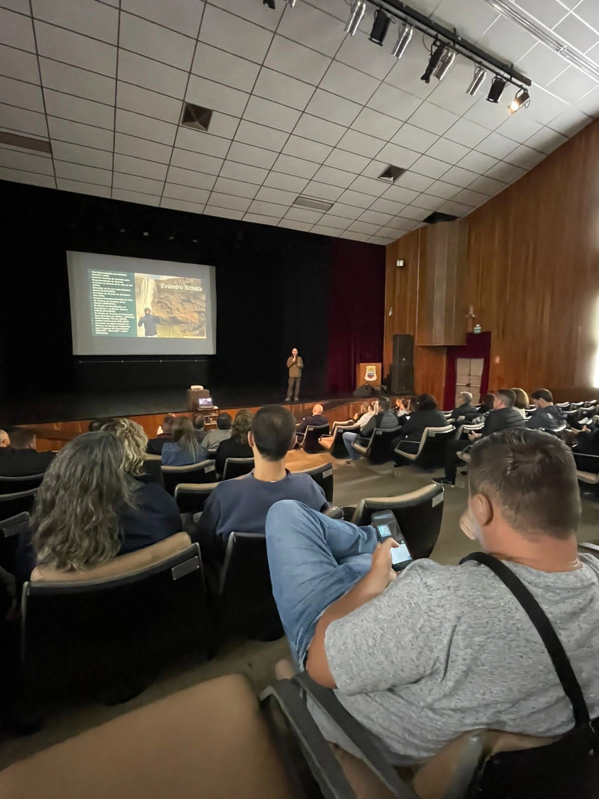 O palestrante foi Evandro Schütz, Gerente Técnico da Associação Brasileira das Empresas de Ecoturismo e Turismo de Aventura (ABETA), e trouxe novas ideias e experiencias sobre o assunto, buscando o desenvolvimento deste segmento na região.