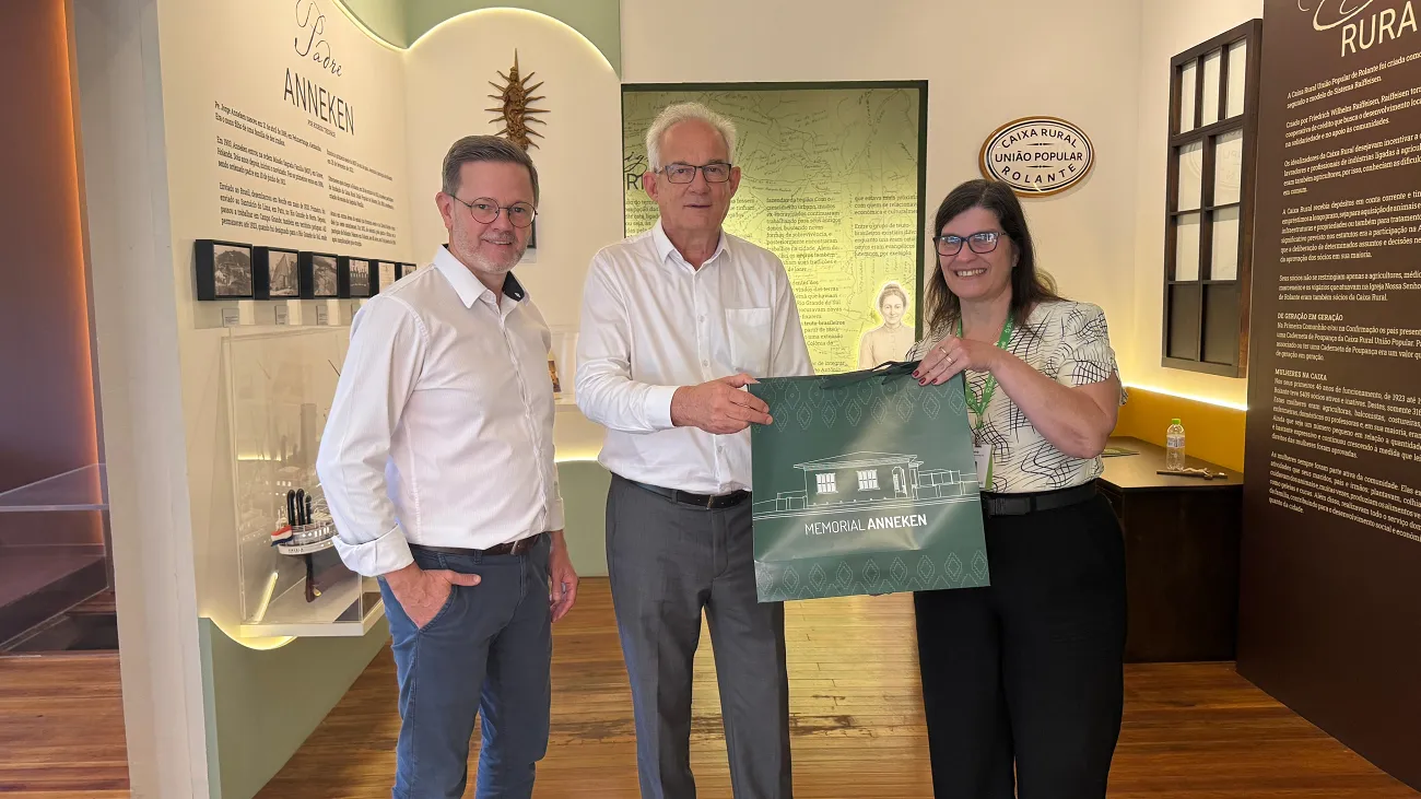 A programação incluiu visita à Superintendência Regional (Sureg) da Sicredi Caminho das Águas e ao Memorial Anneken, espaço que valoriza a trajetória do cooperativismo de crédito na região.