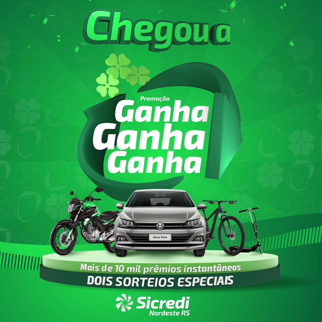 A Sicredi Nordeste RS prepara o segundo e último sorteio da campanha “Ganha, Ganha, Ganha” para o próximo dia 26. O evento será transmitido através das redes sociais da cooperativa e premiará os sorteados com cinco patinetes elétricos e um carro zero quilômetro. Participam todos os associados que realizarem investimentos a partir de R$ 2 mil até o dia 24 de março. Além de rentabilizar seu dinheiro, os investidores fortalecem a Sicredi Nordeste RS apoiando o cooperativismo e desenvolvendo a comunidade, já que os valores aplicados são investidos para a região.