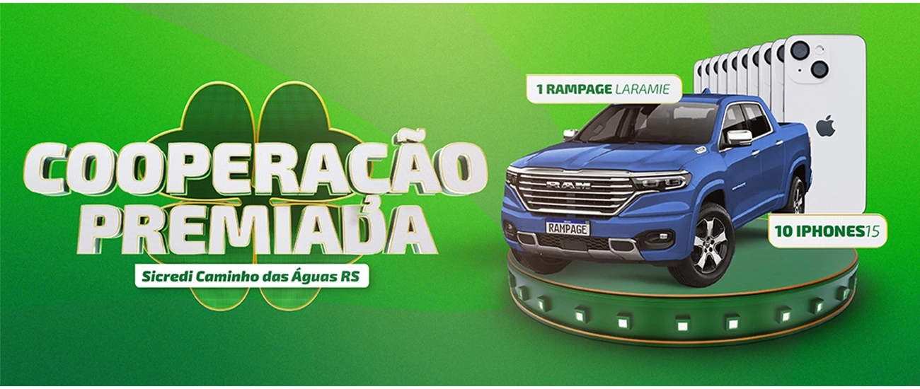 A Sicredi Caminho das Águas lançou nesta semana a campanha "Cooperação Premiada", que oferece aos associados a oportunidade de aumentar seus aportes no capital social da cooperativa e concorrer a prêmios. A iniciativa é uma oportunidade para os associados investirem no futuro da instituição financeira cooperativa e, ao mesmo tempo, concorrerem a mais de R$ 300 mil em prêmios, entre eles uma camionete Rampage, avaliada em R$ 261 mil, e 10 iPhones.