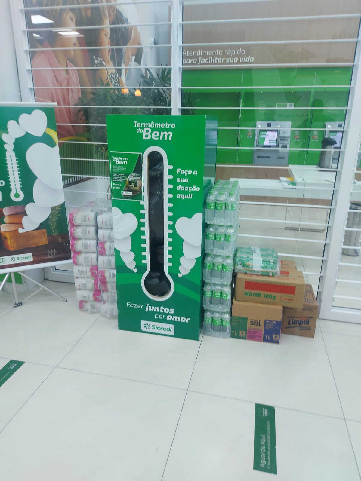 - Campanha Termômetro do Bem: Adiantamos a campanha anual de arrecadação de roupas. Iniciada no dia 03 de maio, a campanha deste ano foi reformulada para ajudar os atingidos pelas enchentes. Além de roupas e agasalhos, está sendo feita a coleta de alimentos não perecíveis, materiais de higiene pessoal e de limpeza. As primeiras entregas já foram realizadas, focando nas cidades mais atingidas. As agências da Sicredi Caminho das Águas são pontos de coleta, leve sua doação até a agência mais próxima.