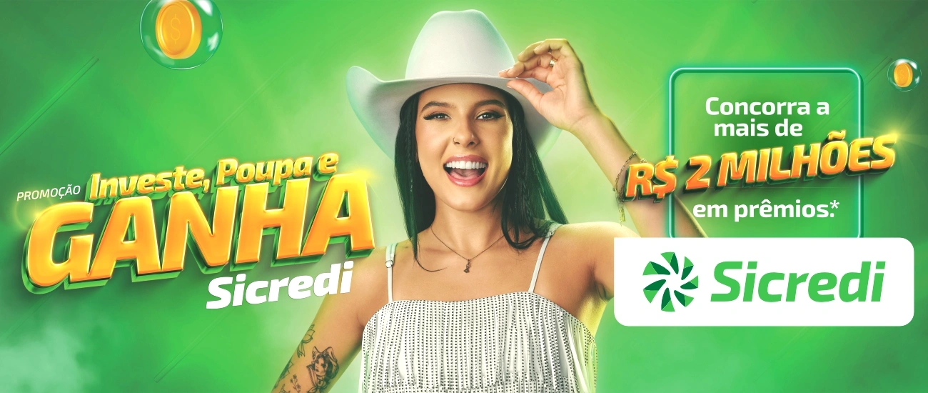 Promoção Comercial vinculada a Títulos de Capitalização da modalidade incentivo emitidos pela ICATU CAPITALIZAÇÃO, CNPJ nº 74.267.170/0001-73 e Processo SUSEP nº 15414.615451/2024-37. Período: 06/05/2024 até 04/11/2024. Prêmios líquidos de Imposto de Renda. Consulte previamente as Condições Gerais e as características essenciais em www.gov.br/pt-br/servicos/consultar-produtos-susep e para mais informações sobre os prêmios e a promoção, acesse o regulamento em https://www.sicredi.com.br/promocao/poupaeganha. SAC Sicredi 0800 724 7220 / Deficientes Auditivos ou de Fala - 0800 724 0525. SAC ICATU 0800 2860109 (atendimento exclusivo de informações relativas ao sorteio de capitalização). Ouvidoria ICATU 0800 286 0047.
