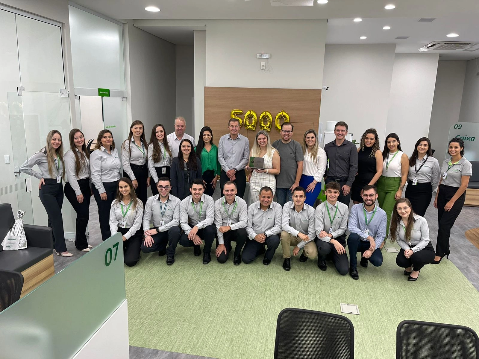 Para celebrar a conquista, a equipe recepcionou o associado número 5.000 na sexta-feira (17) com um café da manhã, contando com a presença do Diretor Executivo, e presidente eleito, Marcio Zwierewicz, da Diretora de Negócios Leila Grik, do Gerente Regional de Desenvolvimento Reinaldo de Oliveira.