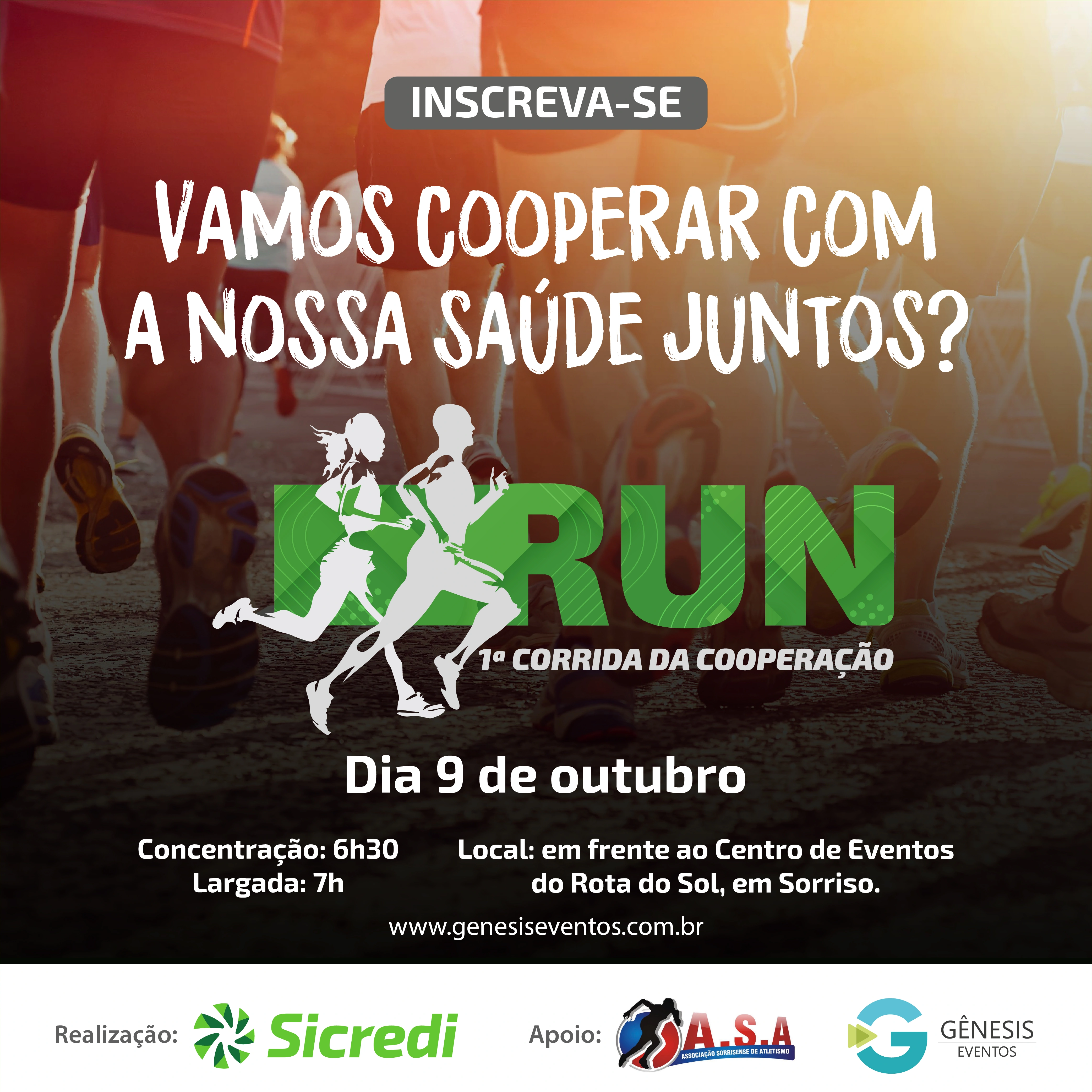 A Corrida da Cooperação tem a realização da Sicredi Celeiro MT/RR e organização da Associação Sorrisense de Atletismo, Federação Mato-Grossense de Atletismo, Confederação Brasileira de Atletismo, Genesis Eventos e Liga Regional de Ciclismo.