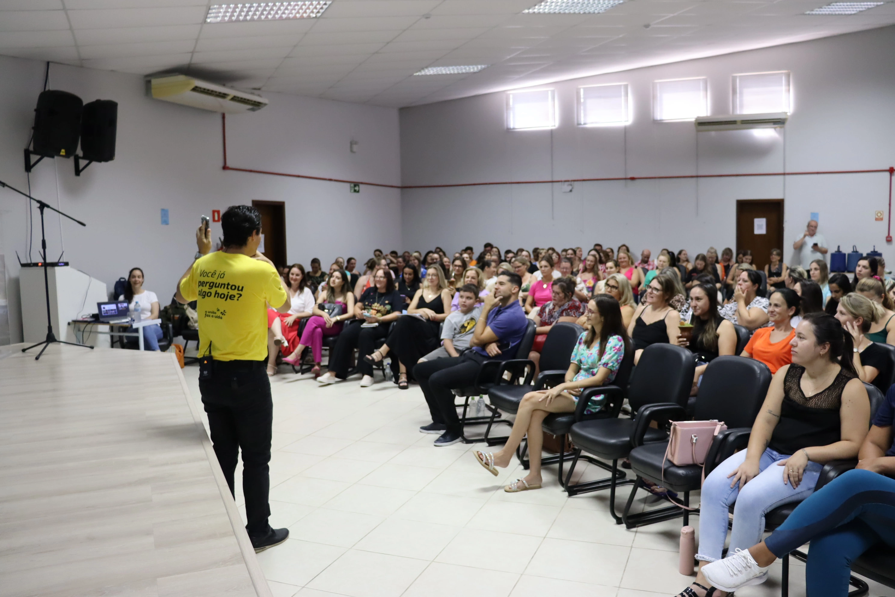O auditório da Associação do Comércio e Indústria de Candelária (ACIC) recebeu no dia 08 de fevereiro, mais de 200 profissionais da educação tiveram um momento de aprendizado e descontração para iniciarem o ano letivo em alto astral. Ao fim da palestra, os sorrisos e aplausos dos presentes no auditório confirmaram o sucesso do encontro.