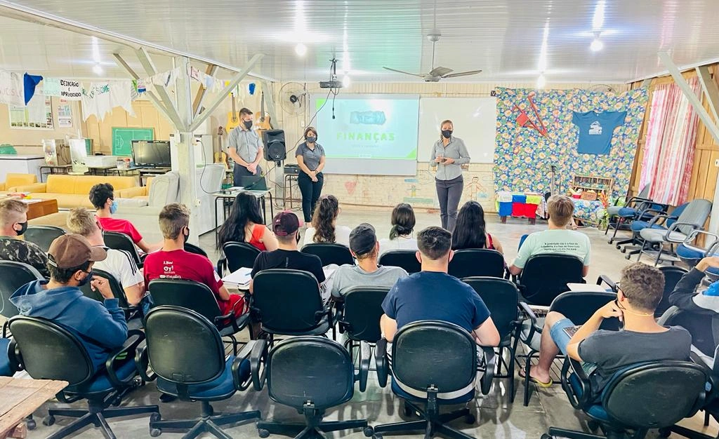 Além da gerente, participaram da conversa os colaboradores Marcelo Luedtke e Valquíria Scotta, levando noções de finanças pessoais e o passo-a-passo para construir hábitos financeiros sustentáveis.