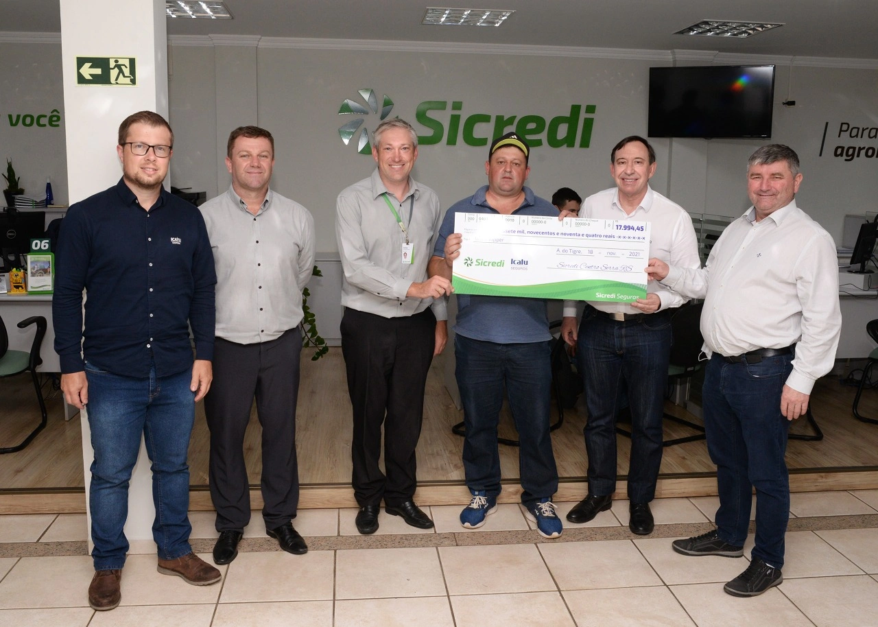 A Sicredi Centro Serra RS entregou no dia 16 de novembro mais um prêmio de seguro de vida a mais um associado da cooperativa. Desta vez, o prêmio do Seguro Mais em Vida, no valor de R$ 17.944,45, foi para Jaime Kipper, associado da agência de Arroio do Tigre. Ele recebeu o cheque simbólico do presidente da cooperativa, Egidio Morsch, do gerente da agência do Sicredi Arroio do Tigre, Héverton Rafael Hermes, e dos representantes da Icatu Seguradora Irlan Menegon e Douglas Goetze. O prêmio foi sorteado pela loteria federal, onde os associados concorrem com o número da sorte que consta na apólice em quatro sorteios mensais e podem ganhar até R$ 50.000,00.