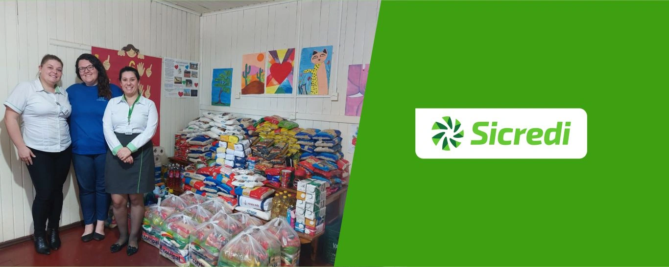 A agência da Sicredi das Culturas RS/MG em Condor se engajou nas comemorações do Dia Internacional do Cooperativismo. A equipe de colaboradores arrecadou 572kg de alimentos, além de itens de higiene que foram doados à ONG Semeando o Amanhã.