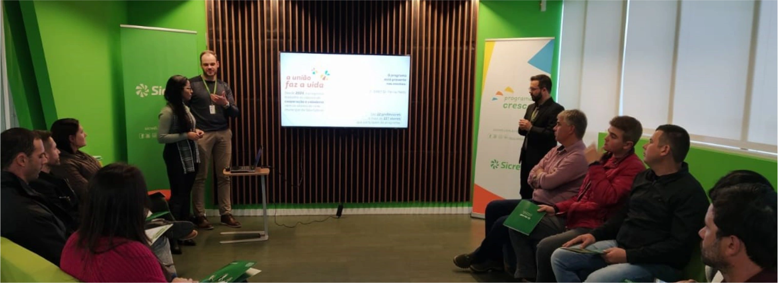 O modelo cooperativista de negócio representa uma forma de atuar e intervir de modo positivo na comunidade. O Programa Crescer traz o espírito do cooperativismo e mostra a essência de valores do Sicredi, através de encontros que são realizados pelos colaboradores das agências.