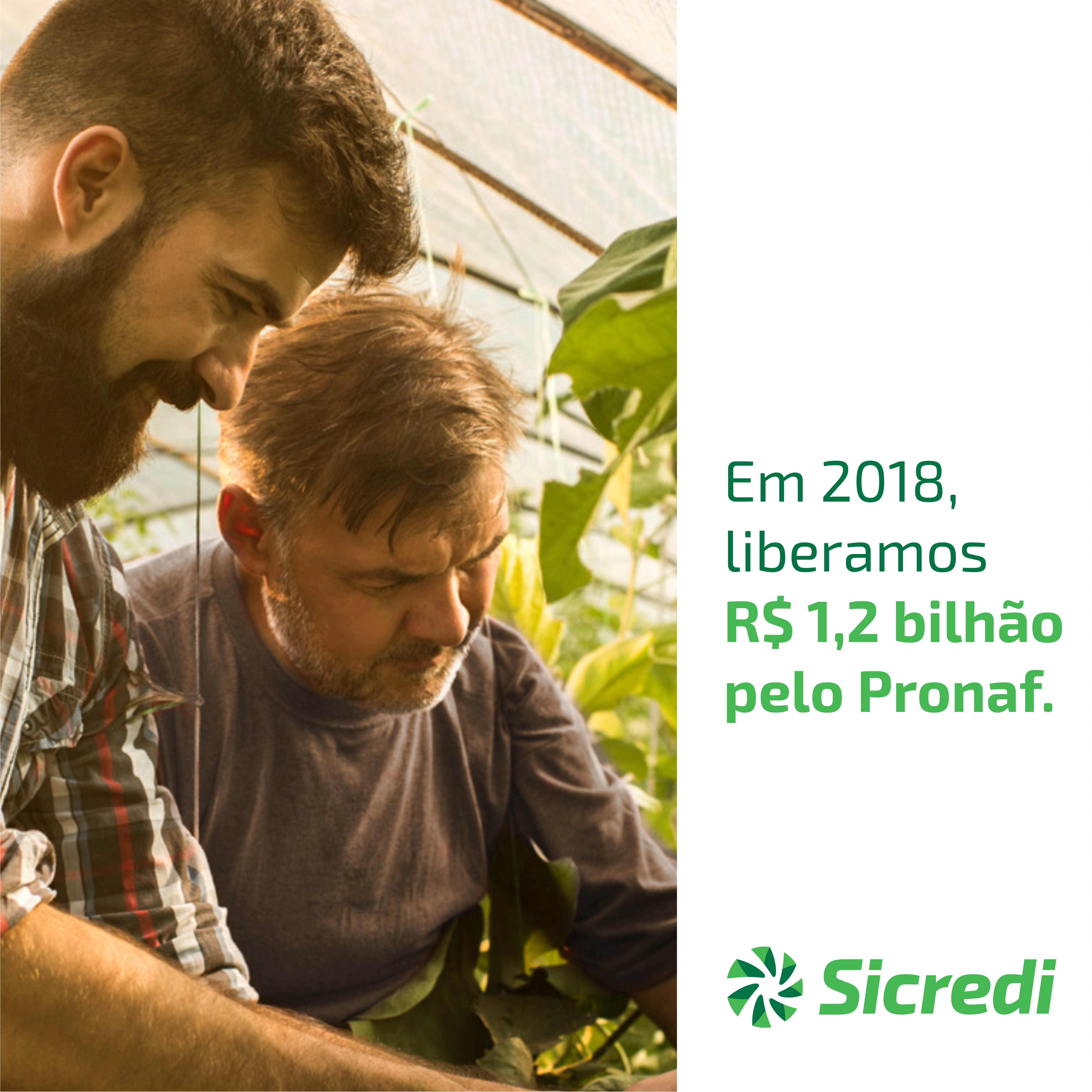 No total, o Sicredi liberou, em 2018, aproximadamente R$ 4,1 bilhões por meio do Pronaf, em mais de 120 mil operações. Este montante corresponde às operações realizadas com recursos do BNDES e de outras fontes de recursos, como a captação de poupança juntos aos associados da instituição financeira cooperativa.