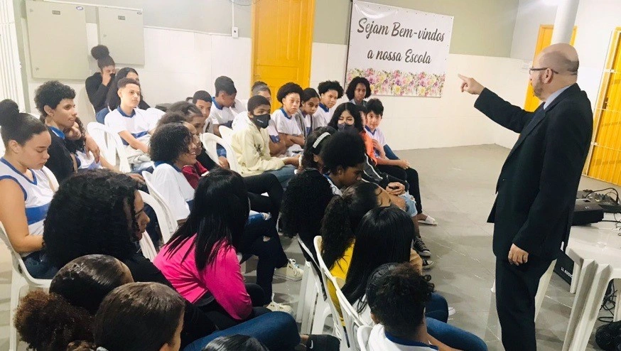 Os alunos da Escola Municipal Jardim Santo Inácio, em Salvador (BA), participaram hoje (31) da palestra "Finanças, mitos e verdades", ministrada pelo Gerente de Desenvolvimento de Negócios, Idenilson Vieira, dentro do programa Cooperação na Ponta do Lápis.