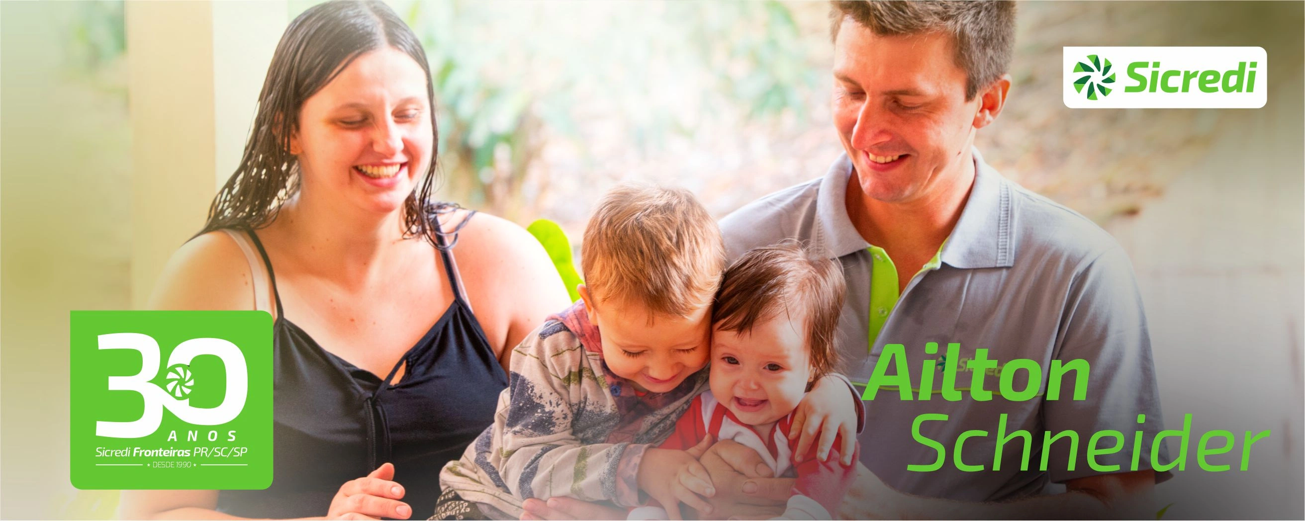 Muito se fala sobre investir e acreditar no poder do jovem. A Sicredi, através da confiança depositada no sonho de Ailton, conseguiu mudar a história de sua família. Ailton Luiz Schneider, de 31 anos, é filho único e após a morte de seu pai, Hildor Schneider, em 2011, precisou assumir os negócios da família para continuar gerando renda para ele e sua mãe Delci.