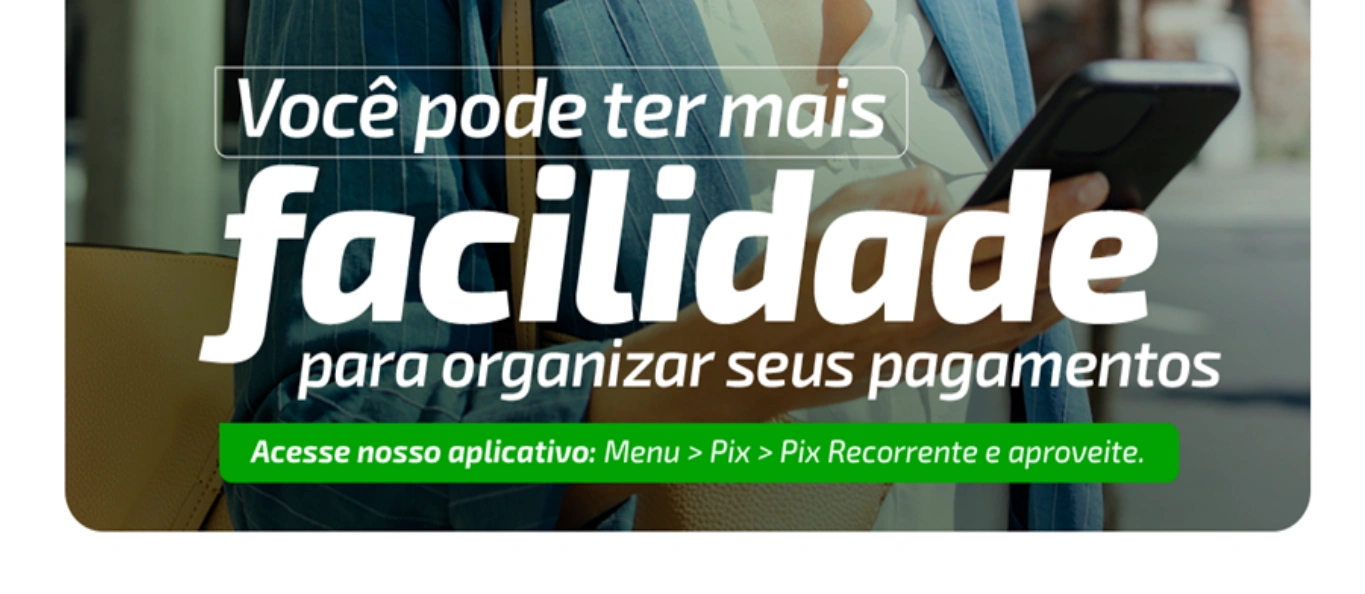 É uma nova solução desenvolvida para facilitar o dia a dia dos associados, pois permite customização de pagamentos Pix recorrentes. Com ela, é possível cadastrar Pix mensais de forma simples e garantir que os pagamentos sejam efetuados na data escolhida, sem atrasos.