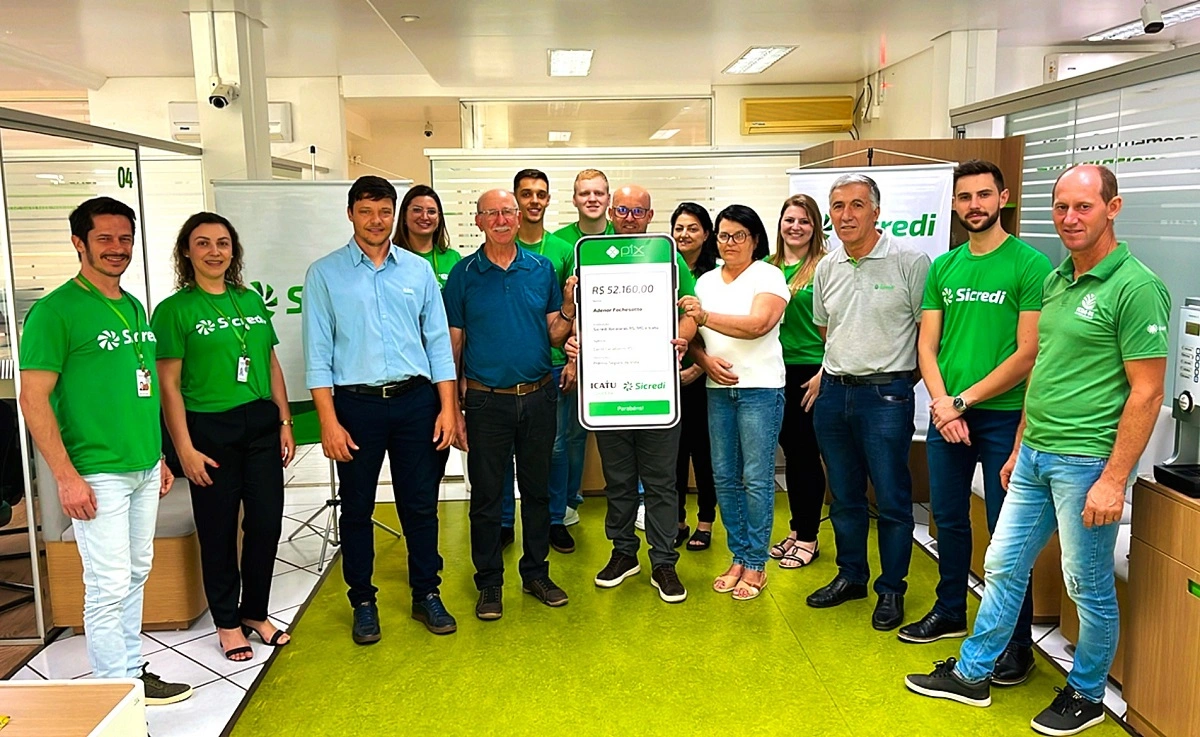 Além do ganhador, estiveram presentes no ato o Vice-Presidente da Sicredi Ibiraiaras RS/MG, Simão Andreazza; o assessor de segmentos de associados, Rodrigo Vieira; o conselheiro de administração, Lindomar Treviso; o assessor comercial da Icatu, Vinicius Muller; o assistente de comunicação, Fiorelo Rigon Neto e demais colaboradores da Sicredi Ibiraiaras RS/MG.