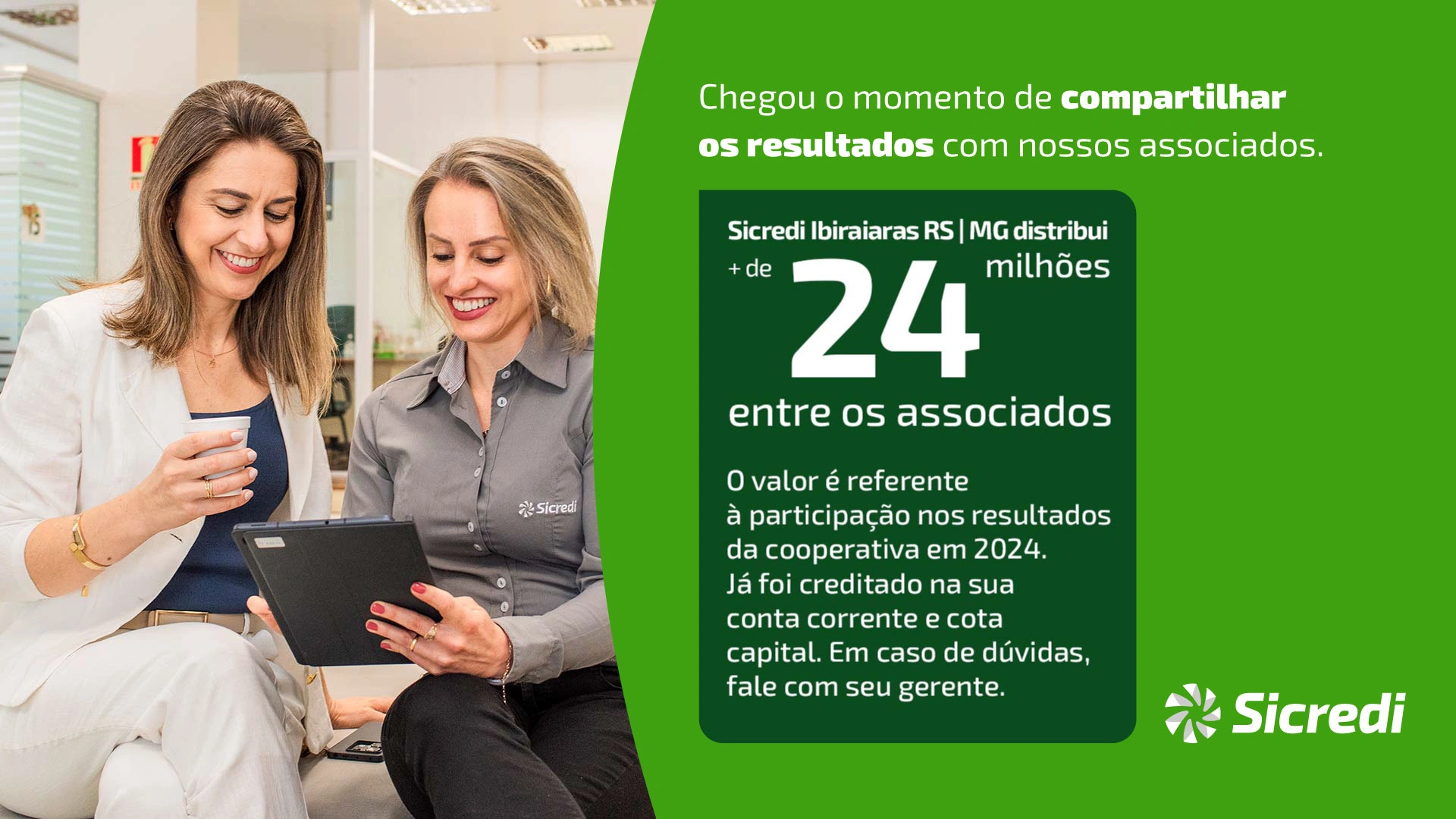 O valor distribuído referente a participação nos resultados da Cooperativa no ano de 2024 foi de R$ 24.237.066, sendo R$ 18.2 milhões creditados em cota capital e R$ 6 milhões em conta corrente. O crédito foi efetuado nesta quarta-feira, dia 30 de abril. Os associados já podem conferir em sua conta corrente e em sua cota capital os valores creditados via aplicativo/internet banking ou em uma de nossas agências.