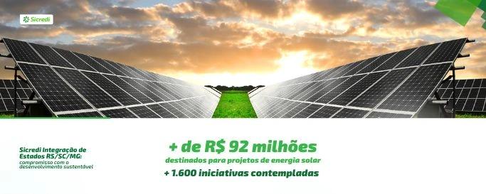 O Sicredi disponibiliza uma linha de crédito específica para energia solar, que contempla o projeto elaborado por uma empresa especializada, como também os equipamentos, placas e acessórios, com taxas acessíveis. Mais informações sobre podem ser obtidas em www.sicredi.com.br/coop/integracaorsscmg/