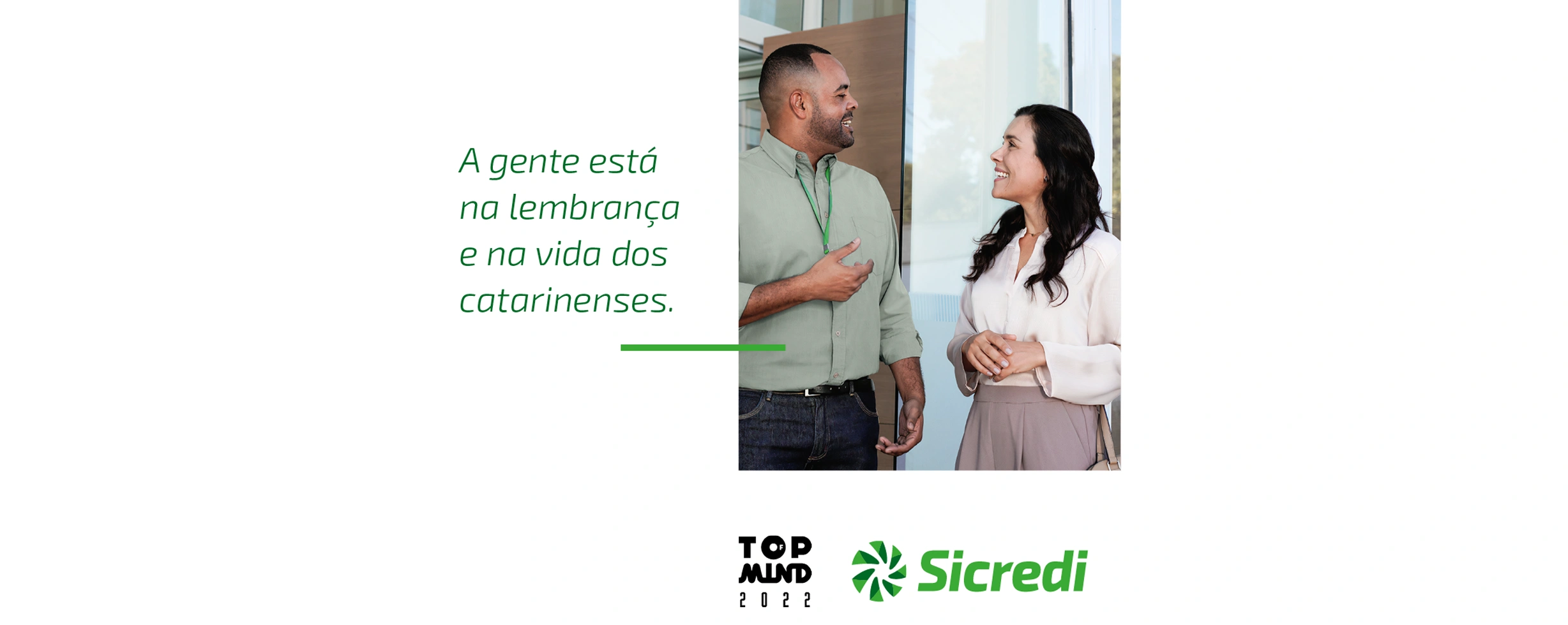 O Sicredi recebeu o Top of Mind, reconhecimento da NSC, em parceria com o Instituto Mapa, às marcas mais lembradas pelos catarinenses. A instituição financeira cooperativa ficou em 1º lugar na Pesquisa Top População na categoria denominada cooperativa de crédito estadual. O levantamento, que considera a primeira empresa que vem à mente do entrevistado, contou com 1.000 respostas de residentes das 30 cidades mais populosas do Estado.