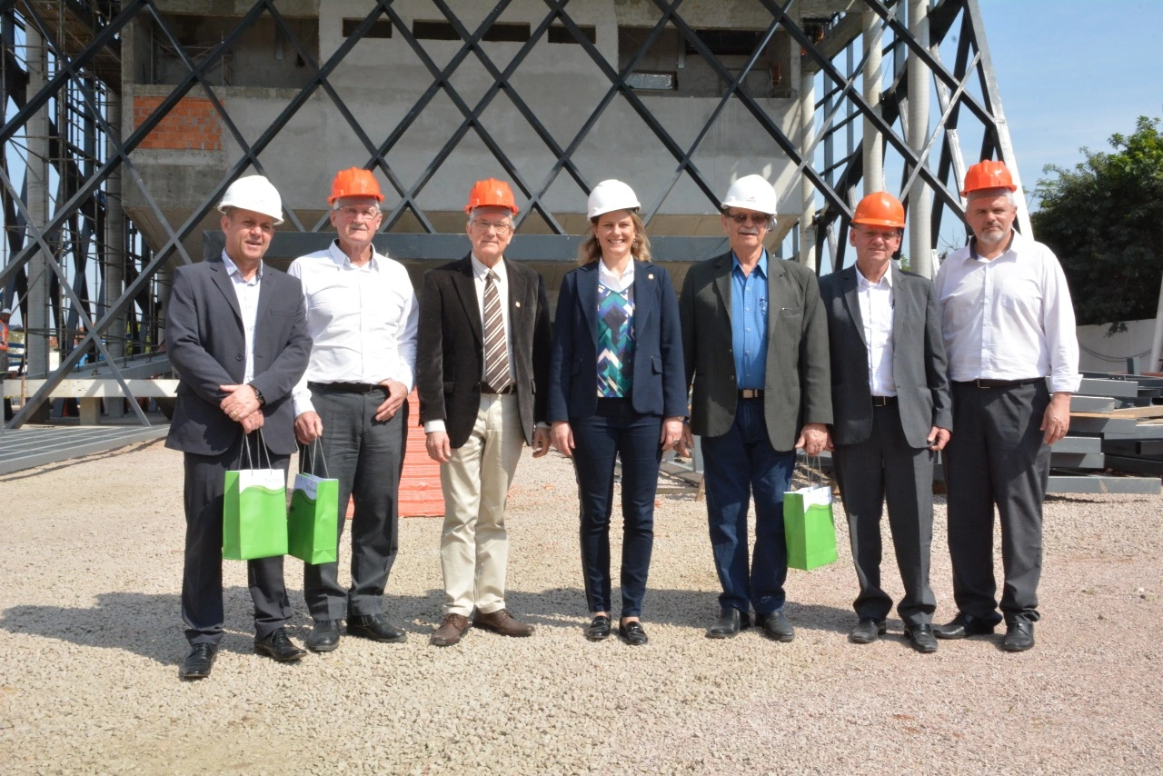 Em seguida, os visitantes tiveram a oportunidade de conhecer todos os espaços, já possíveis de serem acessados. “No momento a obra passa para a fase de finalização da infraestrutura, visto que a estrutura está toda finalizada, agora começam a ser feitas as divisórias, cabeamentos, conclusão das instalações elétricas, forros, pisos e revestimentos. A previsão é de que em dezembro sejam iniciados os acabamentos,” esclarece Jair Antônio Giacobbo, diretor de operações da Cooperativa e responsável pelo acompanhamento da execução do projeto.