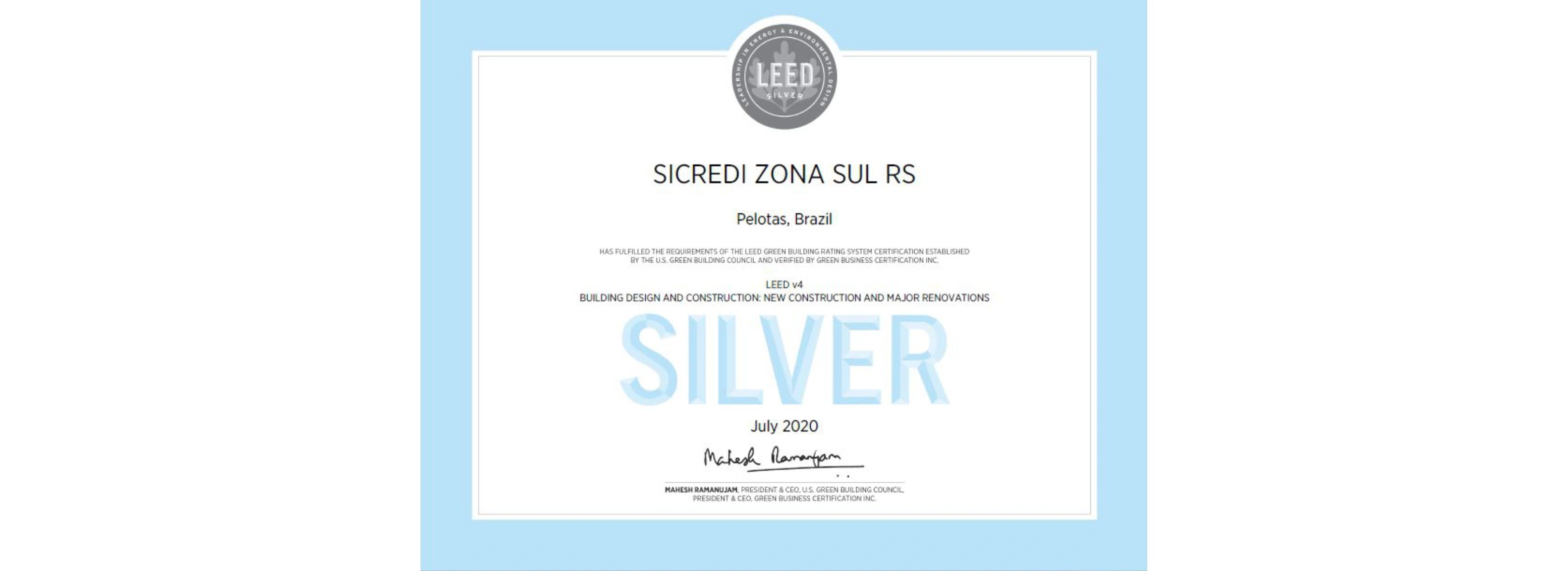 O projeto da Sede da Sicredi Interestados RS, tornou-se a primeira edificação certificada LEED na região em que está inserida, conformando não só o entorno edificado daquele local, mas um exemplo a ser seguido pela indústria da construção que deve ter por objetivo não apenas as questões mercadológicas, mas principalmente a busca na construção de um mundo melhor e mais sustentável, o que garantira um futuro mais humano para as novas gerações, explica o arquiteto Rodrigo Gamboa.
