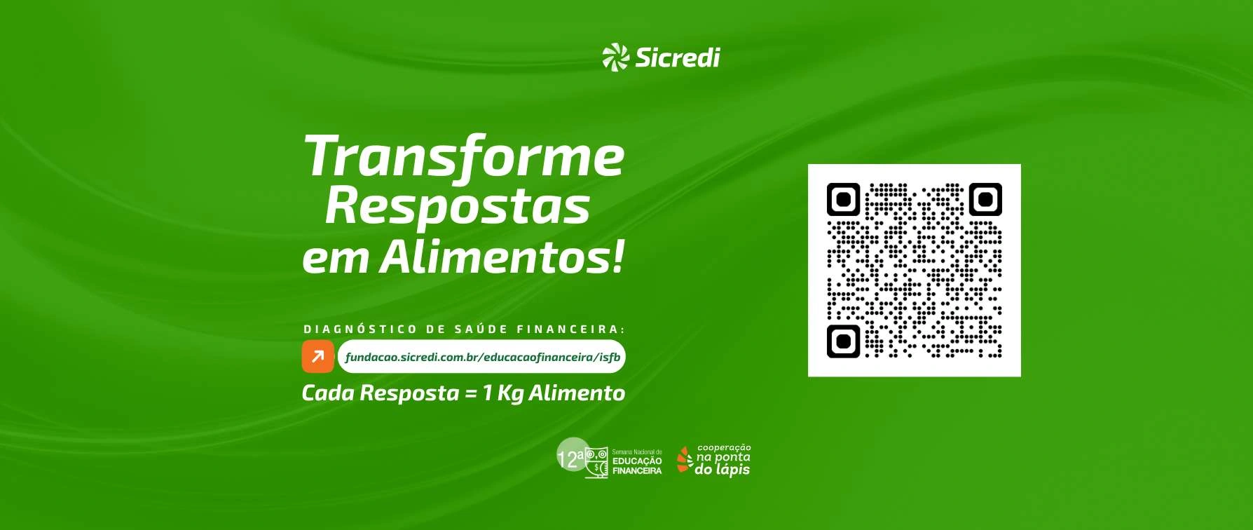 Durante a Semana Nacional de Educação Financeira (ENEF), o Sicredi convida a comunidade a refletir sobre sua saúde financeira por meio de uma ação que une conscientização e solidariedade. A iniciativa propõe que cada pessoa realize um diagnóstico financeiro gratuito, e, a cada participação, 1 kg de alimento será doado para instituições beneficentes da nossa região.