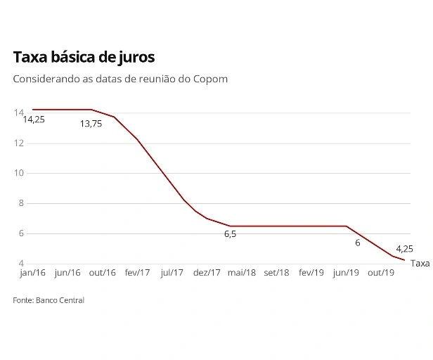Com a decisão desta quarta, a taxa Selic atinge uma nova mínima histórica. É o menor patamar desde 1999, quando o Brasil adotou o regime de metas para a inflação. O atual ciclo de queda da Selic se iniciou em julho do ano passado.