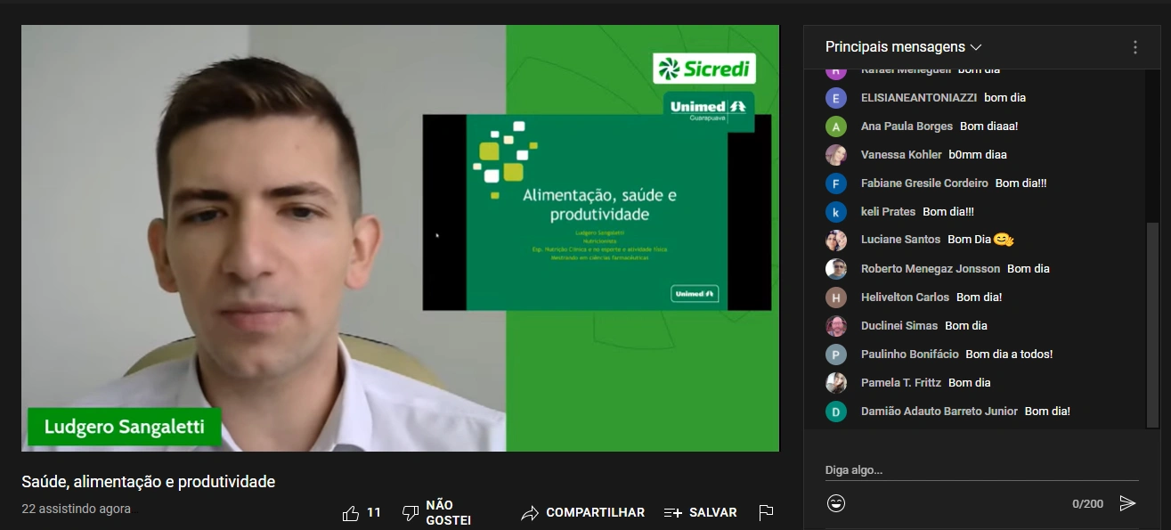 A live ocorreu em parceria com a Unimed Guarapuava e contou também com a participação dos colaboradores da cooperativa, destacando a intercooperação, um dos sete princípios do cooperativismo que compreende a parceria entre duas ou mais cooperativas.