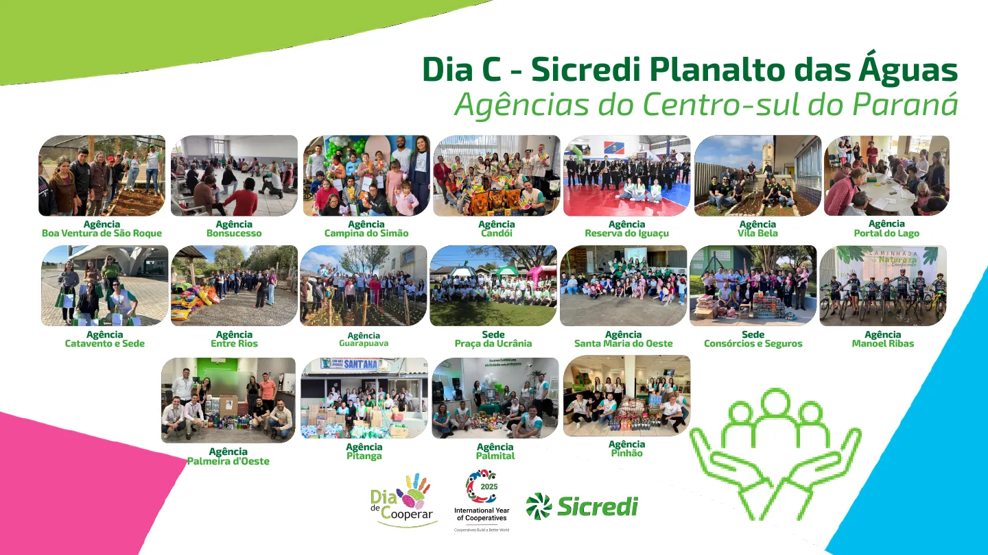 Este ano, o Dia C é ainda mais especial, pois 2025 foi declarado o Ano Internacional das Cooperativas pela ONU. Isso reforça a importância do cooperativismo como ferramenta de transformação social, econômica e comunitária. Mais do que nunca, a Sicredi Planalto das Águas celebra a união, a cooperação e o cuidado com as pessoas, mostrando que juntos é possível gerar impactos positivos e duradouros em nossas comunidades.