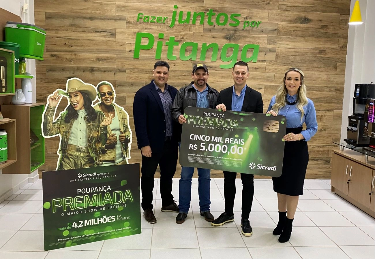 Na manhã desta segunda-feira (14), foi realizada a entrega do prêmio de R$ 5 mil ao associado sorteado na 10° edição da campanha Poupança Premiada Sicredi, em Pitanga/PR.