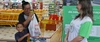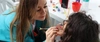 Colaboradora voluntária pinta rosto de criança em ação na Praça