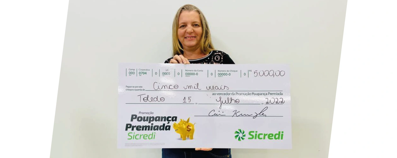 Em 2022, na Sicredi Progresso PR/SP, 9 associados foram contemplados na campanha. Eles receberam prêmios de R$ 5 mil, a exemplo da associada, Gerli Zimmermann da Agência de Novo Sarandi em Toledo/PR.