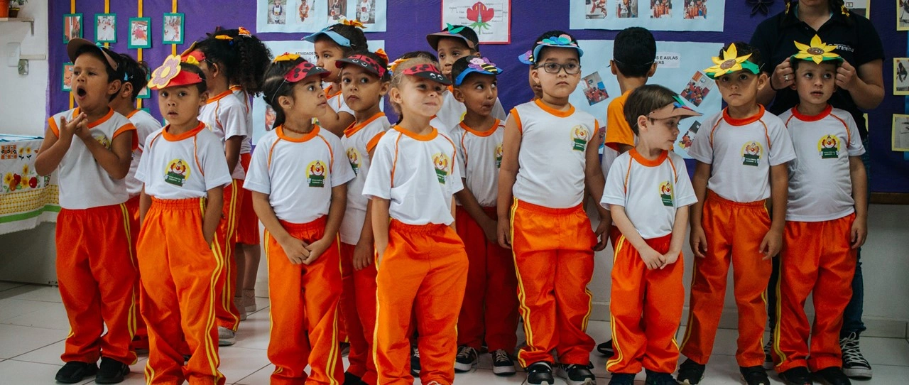 Crianças se preparam para a apresentação na Mostra Pedagógica