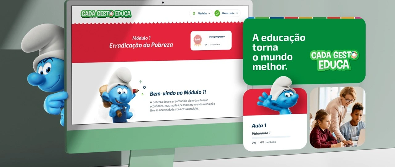 Lançada em junho, a plataforma desenvolvida pela DZ Estúdio em parceria com o Sicredi registrou mais de 6 mil aulas assistidas apenas no primeiro mês. Com ampla adesão de professores de instituições públicas e privadas, a solução oferece 17 módulos com vídeo-aulas detalhadas e atividades práticas, cada um com uma abordagem lúdica envolvendo os Smurfs. Os educadores que participam da jornada recebem um certificado digital ao concluir o curso, que pode ser adicionado ao currículo e compartilhado nas redes sociais. A plataforma também promove a troca de experiências, o compartilhamento de conteúdos entre os professores e oferece diversão com um jogo interativo voltado para os alunos.