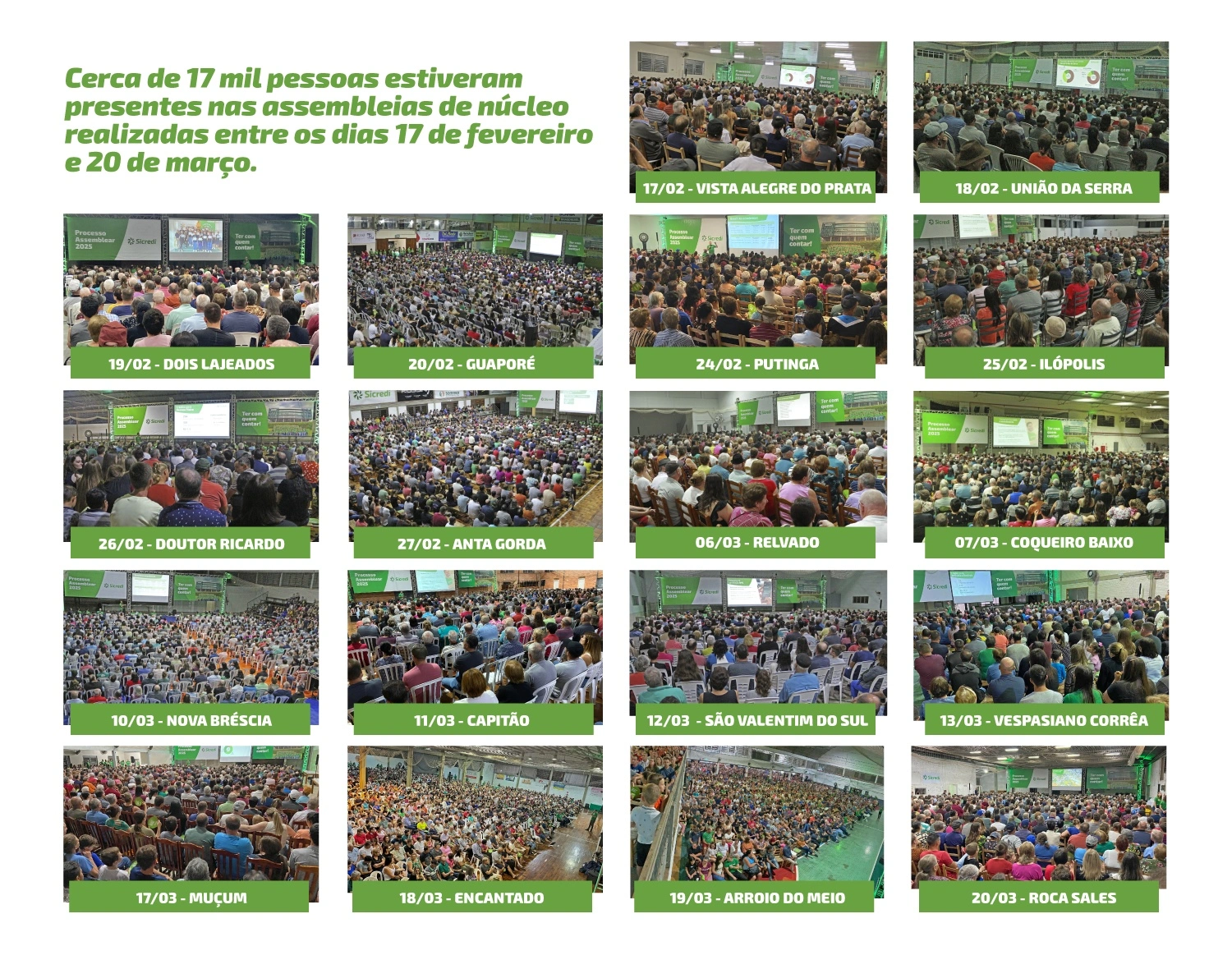O Sicredi Região dos Vales realizou de 17 de fevereiro a 20 de março o Processo Assemblear 2025 nos 18 municípios da sua área de ação. Mais de 17 mil pessoas participaram dos encontros, onde foram apresentados temas como: prestação de contas do exercício 2024, ações promovidas nas comunidades, as contribuições voltadas ao desenvolvimento da região e os benefícios gerados ao quadro social.