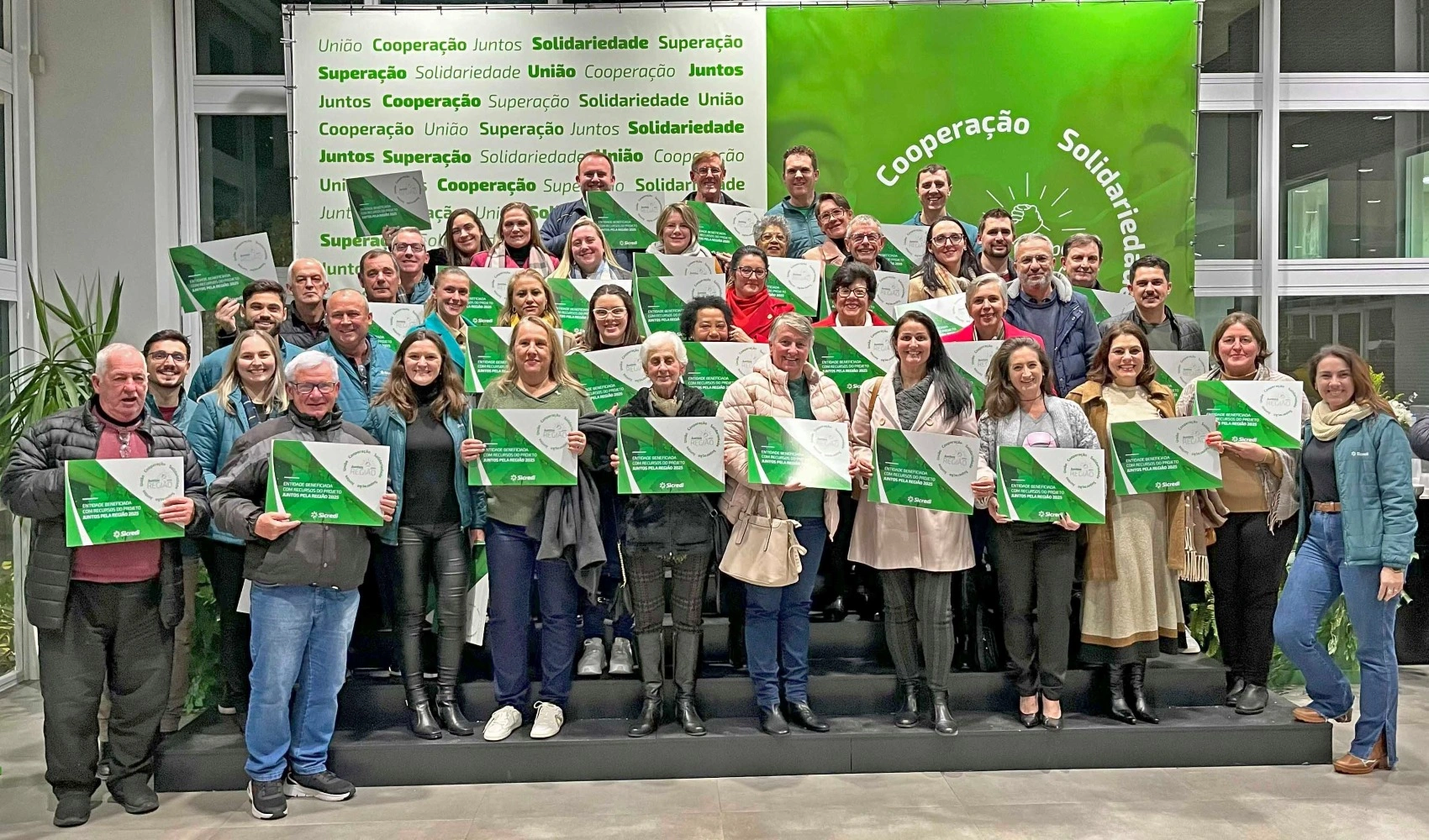 Na noite de 03 de julho, o Sicredi Região dos Vales reuniu cerca de 700 pessoas na Sede da Cooperativa de Crédito, em Encantado, como forma de valorizar e agradecer a todos os representantes dos 480 projetos e entidades beneficiadas neste ano, as quais fazem uma enorme diferença na vida de tantas pessoas da região. O momento também teve o intuito de valorizar as iniciativas voluntárias que demonstram na prática o que é cooperação.