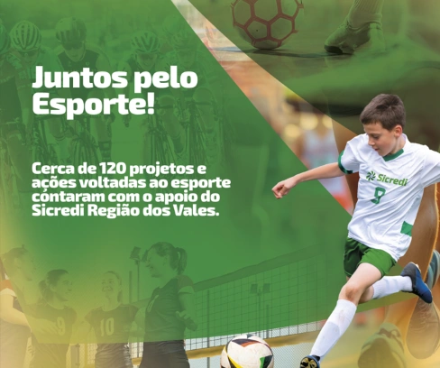 No último ano, o Sicredi Região dos Vales apoiou cerca de 120 projetos e ações esportivas nos 18 municípios de sua área de ação. Escolinhas de futebol e vôlei, campeonatos, eventos comunitários e outras atividades contaram com a cooperação da Instituição Financeira Cooperativa incentivando a integração entre as comunidades e fortalecendo o espírito coletivo.