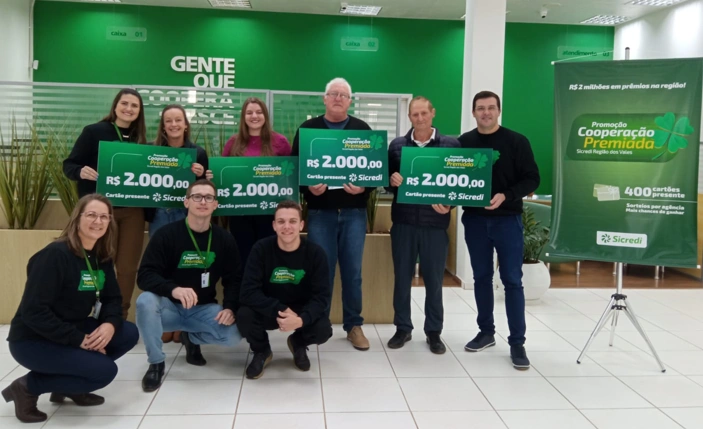 Sicredi Região dos Vales entrega prêmios da primeira rodada de sorteios da Promoção Cooperação Premiada
