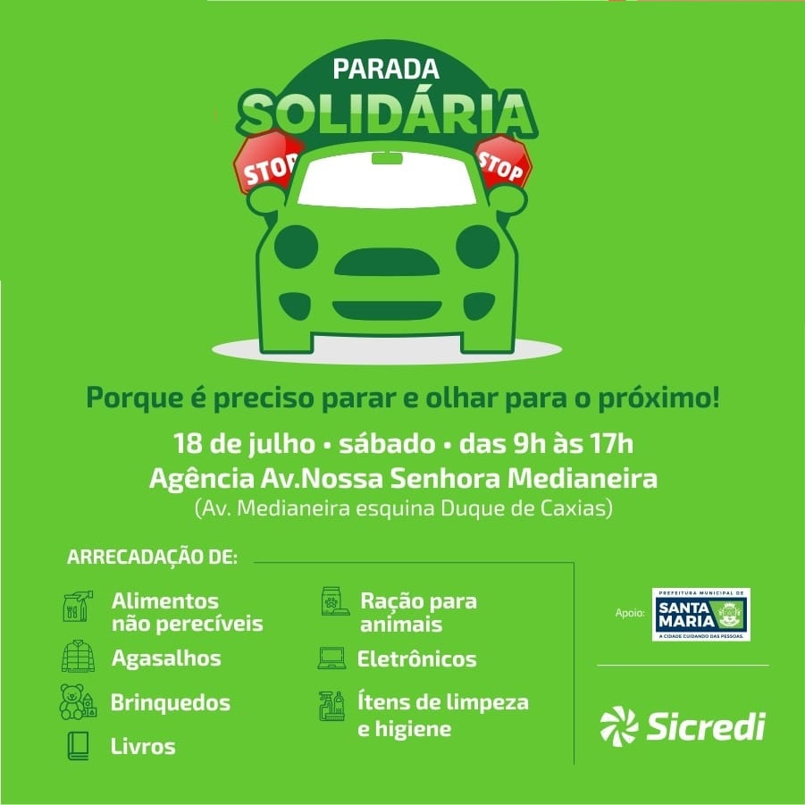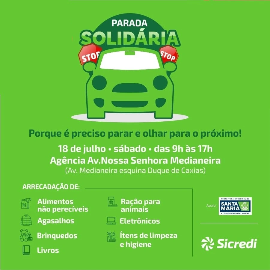 Sicredi Região Centro RS/MG realizará Parada Solidária.