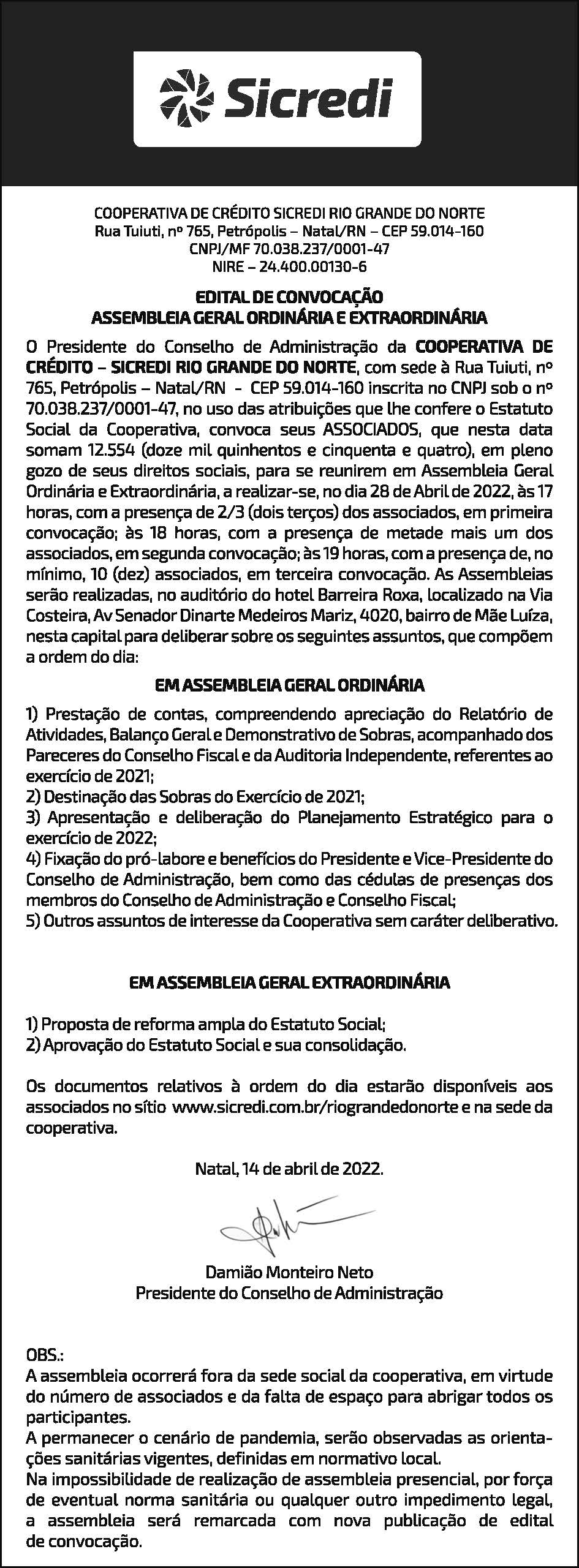 Edital da Assembleia Geral Extraordinária 2025
